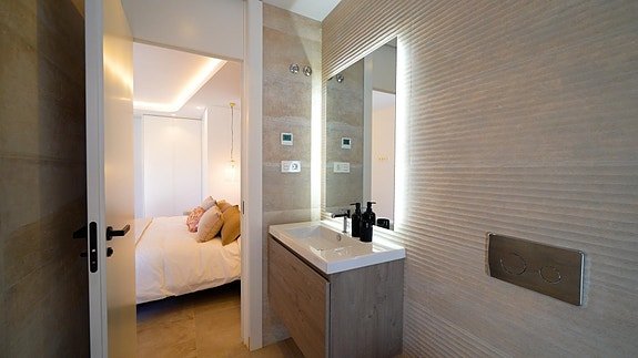 - Høy materialstandard med Porcelanosa-fliser i hele boligen