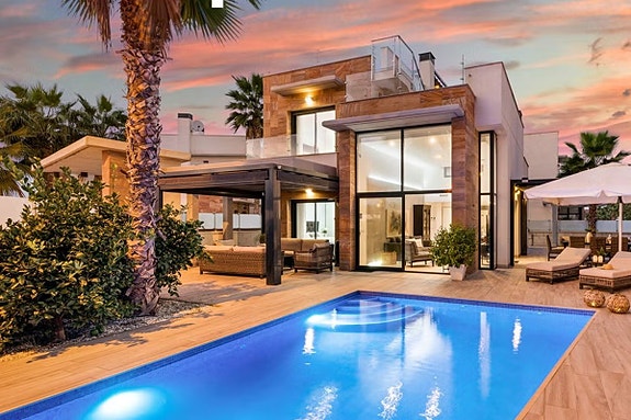 Spania1 har gleden av å presentere denne luksuriøse hjørne villaen i Lomas de Cabo Roig. Villaen ligger sentralt med 10 minutters gange til Spanias største utendørs kjøpesenter, resturanter og matbutikker. Til stranden er det kun 25 minutters gange eller en rask sykkeltur.Huset har et stort uteområde med solsenger, sofagrupper, spisegruppe og lounge. Perfekt eiendom for dem som ønsker det lille ekstra. Det er utekjøkken med vask, grill og god plass til familie og venner.