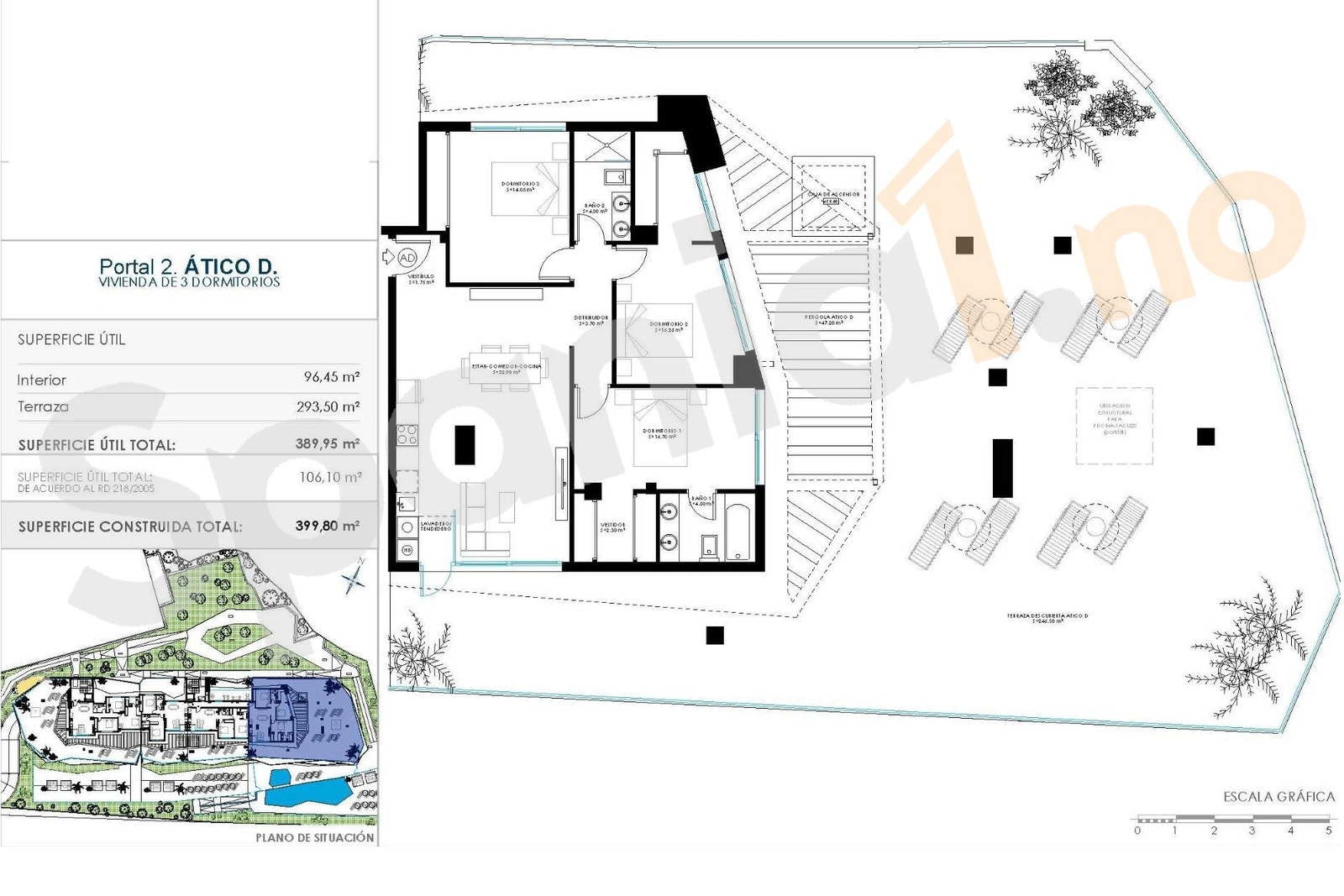 Leiligheten leveres med fullt utstyrt kjøkken, integrert klimaanlegg, aerotermisk system for varmtvann og to private parkeringsplasser. Som penthouse disponerer boligen ekstra uteplass sammenlignet med øvrige enheter i prosjektet.