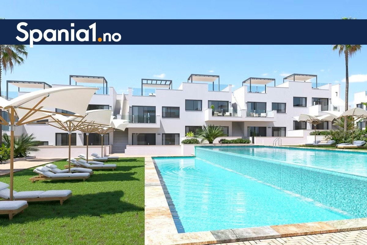 Spania1 har gleden av å presentere et fantastisk nytt boligprosjekt med "bungalow" leiligheter med 2 soverom og 2 bad, med mulighet for et tredje soverom. Leilighetene er bygget med materialer av høy kvalitet og med fantastisk utsikt over den rosa lagunen. Du kan velge mellom leiligheter i første etasje med romslig hage og leiligheter i øverste etasje med balkong og egen takterrasse. Komplekset har et stort felles hageområde, et svømmebasseng med utsikt over lagunen og en lekeplass. Parkeringsplass og bod mot tilleggspris.