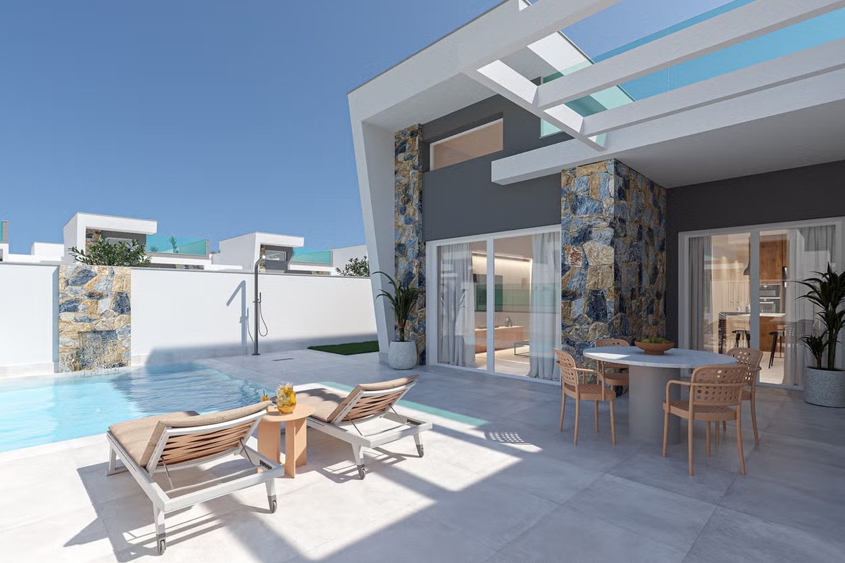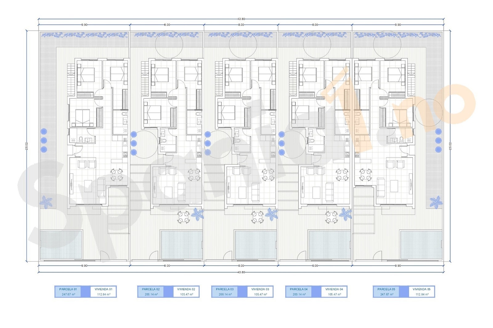 Spania1 har gleden av å presentere dette eksklusive prosjektet av fem villaerpå et plan i sjarmerende Los Alcázares.