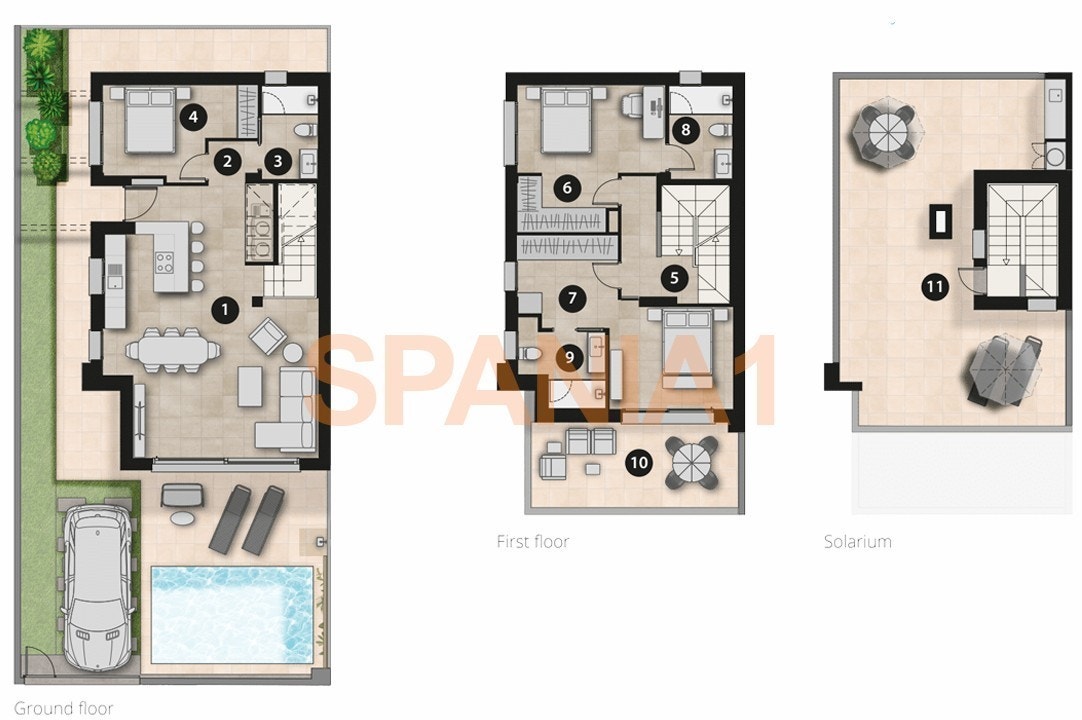 Spania1 har gleden av å presentere et prosjekt med fire moderne villaer over to plan + takterrasse i hjertet av San pedro del pinatar.