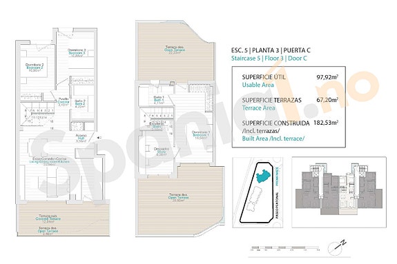- Penthouse-leiligheter med 3 soverom, 2 bad og private takterrasser