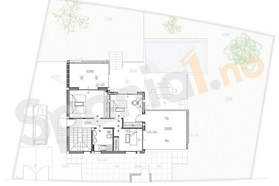 I andre etasje er det tre soverom, ett bad og to terrasser med utsikt over nærområdet. Utendørsområdet har privat basseng og parkering på egen tomt.