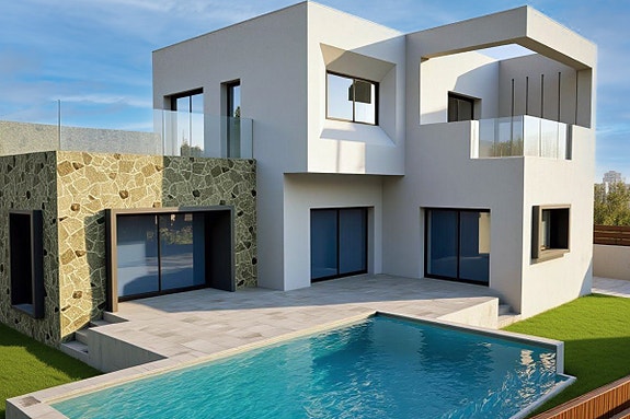 I Ciudad de las Comunicaciones i San Miguel de Salinas kommer denne nyoppførte villaen med romslig tomt, privat basseng og åpen utsikt mot appelsinlunder og landskapet rundt. Området ligger høyt og rolig til, med kort vei til golfbaner, servicetilbud og kysten.