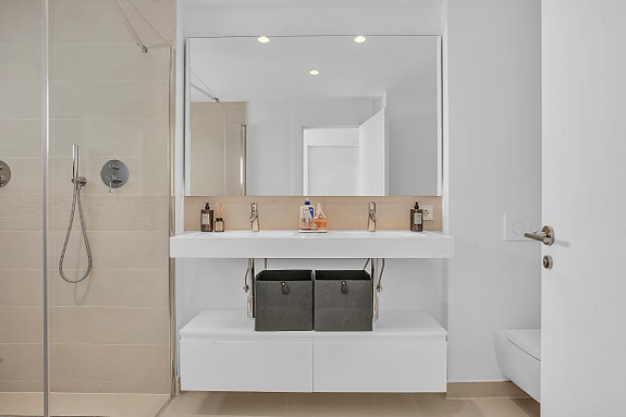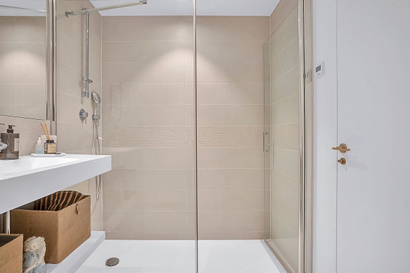 Boligen holder gjennomgående høy standard med flere oppgraderinger utover det som er normalt i prosjektet, blant annet vannbåren gulvvarme i alle rom med individuell styring.