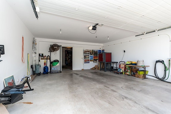 - Kjeller med romslig garasje for 2 biler, flerbruksrom (nå brukt som atelier) og teknisk rom med systemer som gjør boligen tilnærmet selvforsynt.