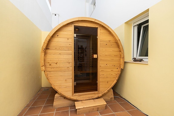 - Utgang til både front- og bakterrasse, sistnevnte med profesjonell sauna (tradisjonell og infrarød).