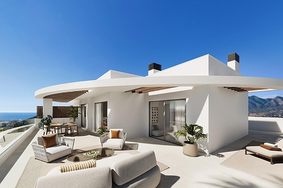 Alle våre meglere er norske. Ingen kjøpepress.Spania1 presenterer dette nye boligprosjektet ligger høyt og fritt til i Las Lagunas de Mijas, like ved Cerrado del Águila golfbane. Prosjektet består av 59 moderne leiligheter fordelt på fire bygg, med 1, 2 og 3 soverom. Nesten alle boligene har åpen utsikt mot Middelhavet, og den hevede plasseringen gir gode lysforhold og høy grad av privatliv.