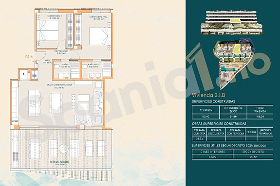 Spania1 presenterer et eksklusivt boligprosjekt med 22 leiligheter, alle med 2 eller 3 soverom. Leilighetene på bakkeplan har private bassenger for ekstra luksus.