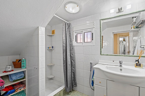 I toppetasjen ligger det tredje soverommet med direkte tilgang til en romslig takterrasse. Her har du gode solforhold og fin utsikt over området – et naturlig samlingspunkt for både avslapning og sosiale sammenkomster.