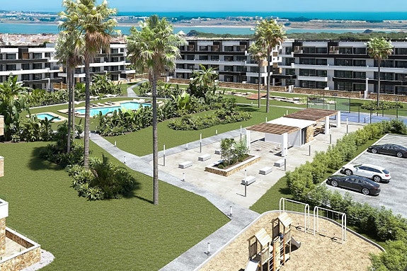 Spania1 presenterer en ny og spennende boligresidens i La Siesta, Torrevieja. Prosjektet består av moderne leiligheter med 2 soverom og 2 bad (ett en-suite), alle med romslige terrasser.