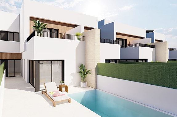I Santiago de la Ribera, kun 1 km fra stranden ved Mar Menor, bygges et nytt prosjekt med 12 moderne villaer. Boligene har 3 soverom og 2–3 bad, privat hage med basseng, terrasse og takterrasse med utekjøkken på utvalgte enheter.